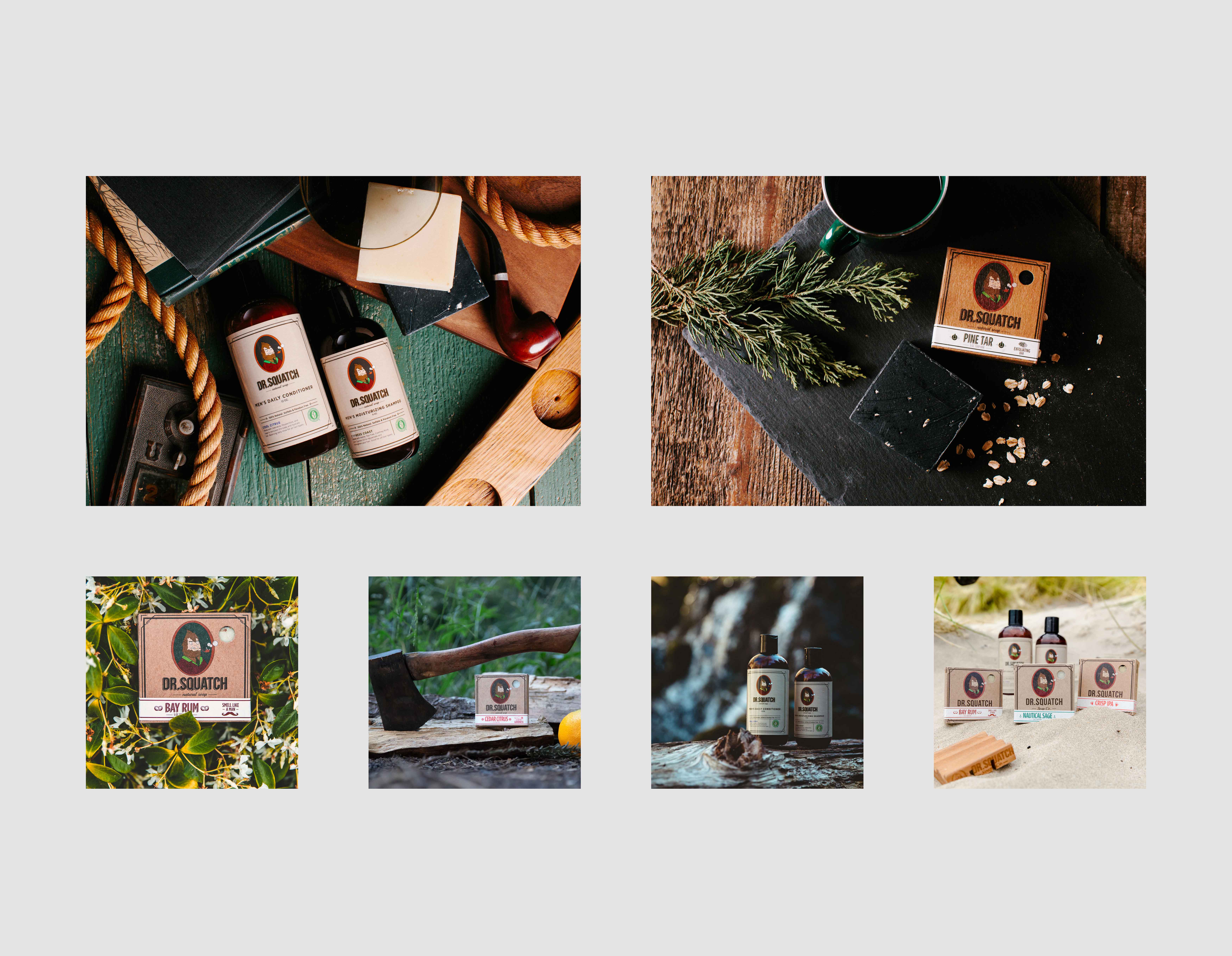 Dr. Squatch is a personal care brand that focuses on products using natural ingredients marketed specifically to men. Since the target audience is young males looking for organic personal hygiene products, the brand was envisioned to have a sophisticated outdoor look.