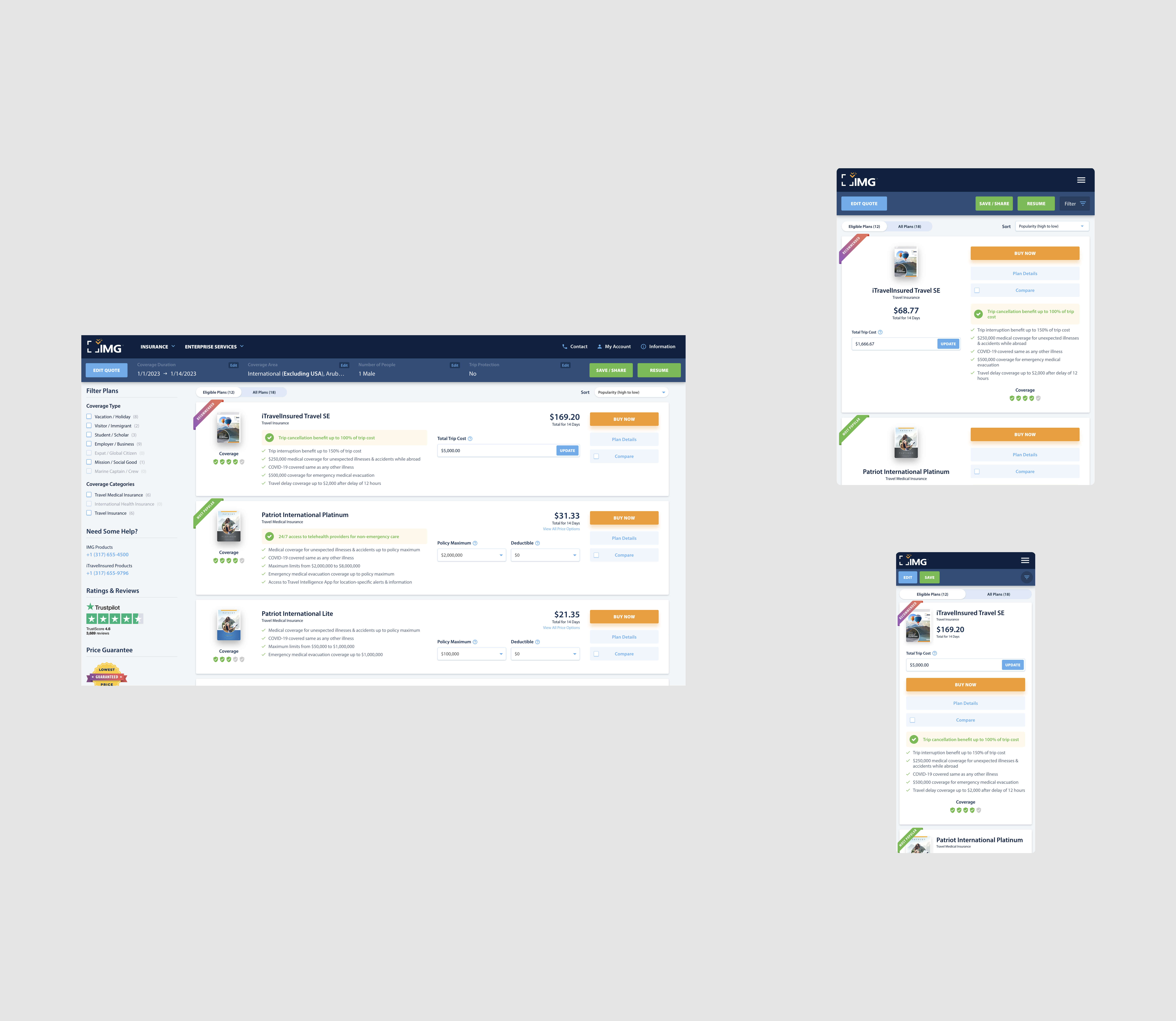 Personalized Plan Selection: The quote page's ability to populate qualified plans based on the information provided by the user in the pre-quote stage indicates a personalized approach. This feature helps users find insurance plans that align with their specific travel needs, enhancing the user experience by saving time and effort.