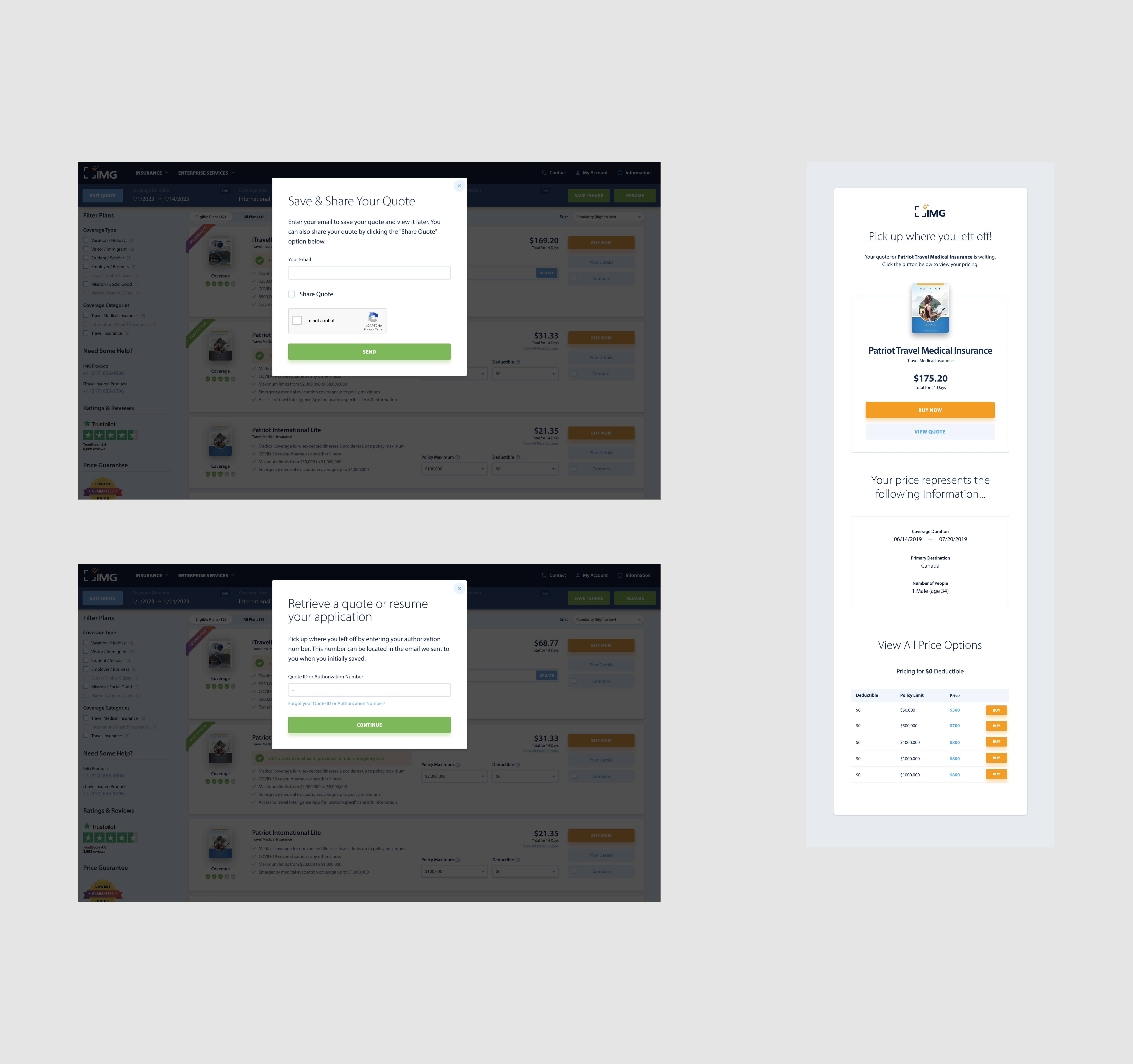 Resumable Quote: Offering the option for users to resume their quote at a later time is a valuable UX feature. It acknowledges that users might need more time or further information to make a decision. By allowing users to continue their quote where they left off, the website provides a seamless experience and eliminates the need to start the process from scratch.